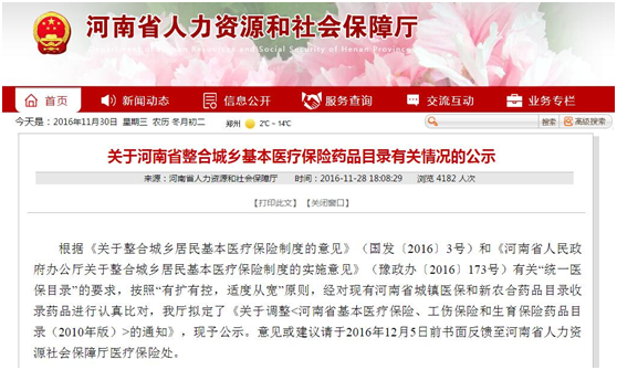 根據(jù)《關(guān)于整合城鄉(xiāng)居民基本醫(yī)療保險(xiǎn)制度的意見》(國發(fā)〔2016〕3號)和《河南省人民政府辦公廳關(guān)于整合城鄉(xiāng)居民基本醫(yī)療保險(xiǎn)制度的實(shí)施意見》(豫政辦〔2016〕173號)有關(guān)“統(tǒng)一醫(yī)保目錄”的要求,河南省人力資源和社會保障廳對《河南省基本醫(yī)療保險(xiǎn)、工傷保險(xiǎn)和生育保險(xiǎn)藥品目錄(2010年版)進(jìn)行調(diào)整。